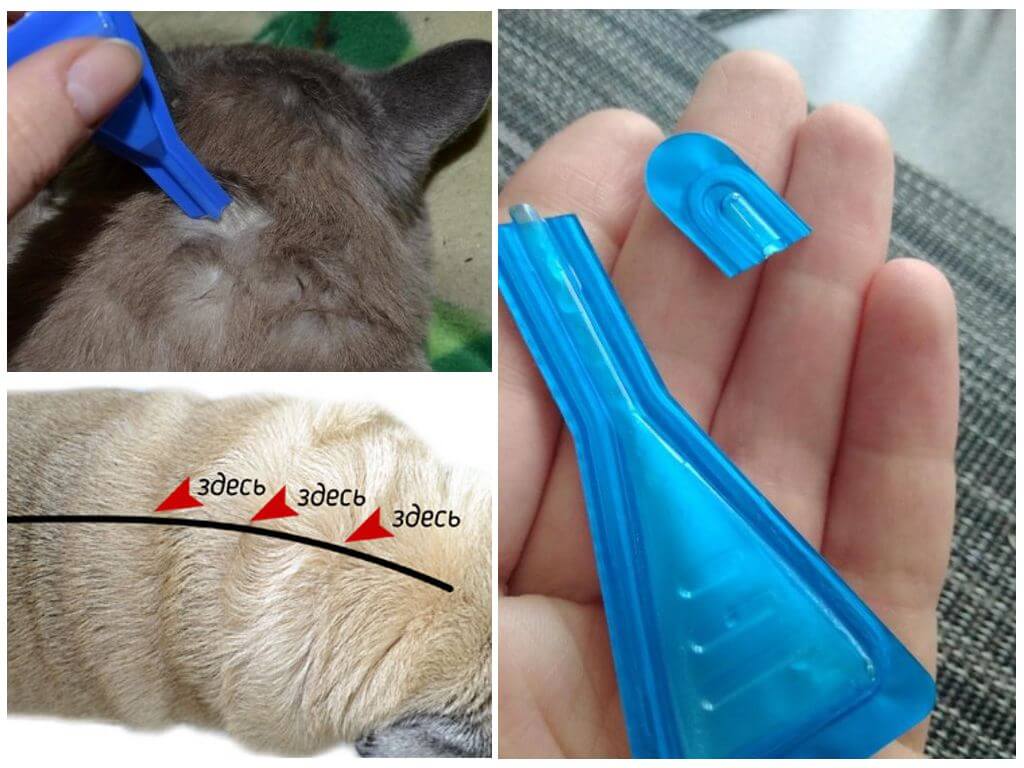 После этого на шее и между лопаток раздвигается шерсть. На кожу капается состав. В идеале лучше подержать животное какое-то время в руках и успокоить. Далее уже процесс кроется в деталях: