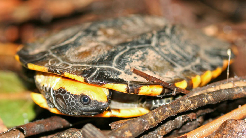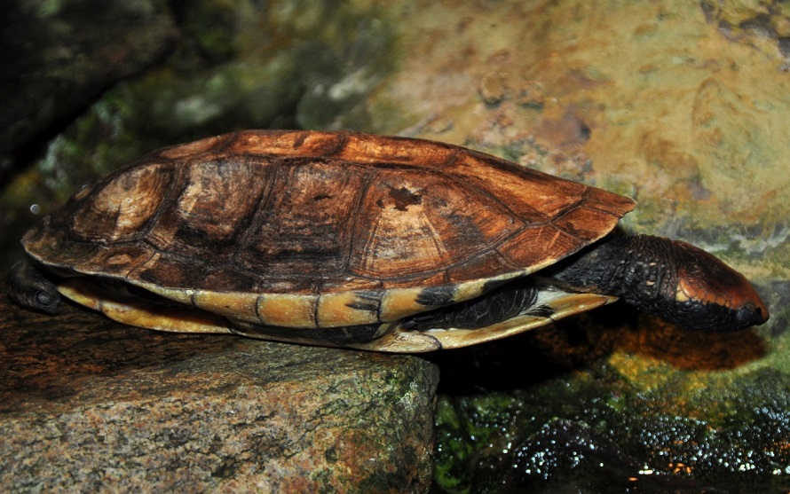 Черепаха, появившаяся в российских аквариумах из вод азиатских стран. Панцирь плоский и овальный. Цвет – бурый или с оттенками коричневого и зелёного. Есть ярко-желтые полосы на лапах и голове.