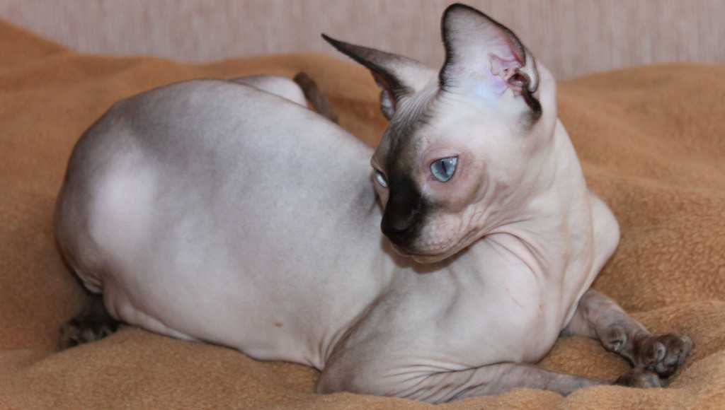 Донские сфинксы — самые крупные представители породы. Петербургская порода была выведена при скрещивании с ориентальной, они покрыты тонким слоем шерсти.