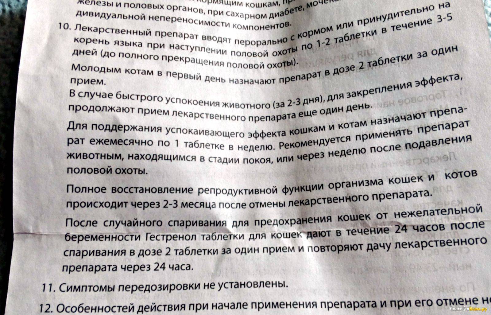 - Гестренол. Таблетки дл орального применения. Регулирует поведение кошек во врем половой охоты, снижает половое возбуждение.