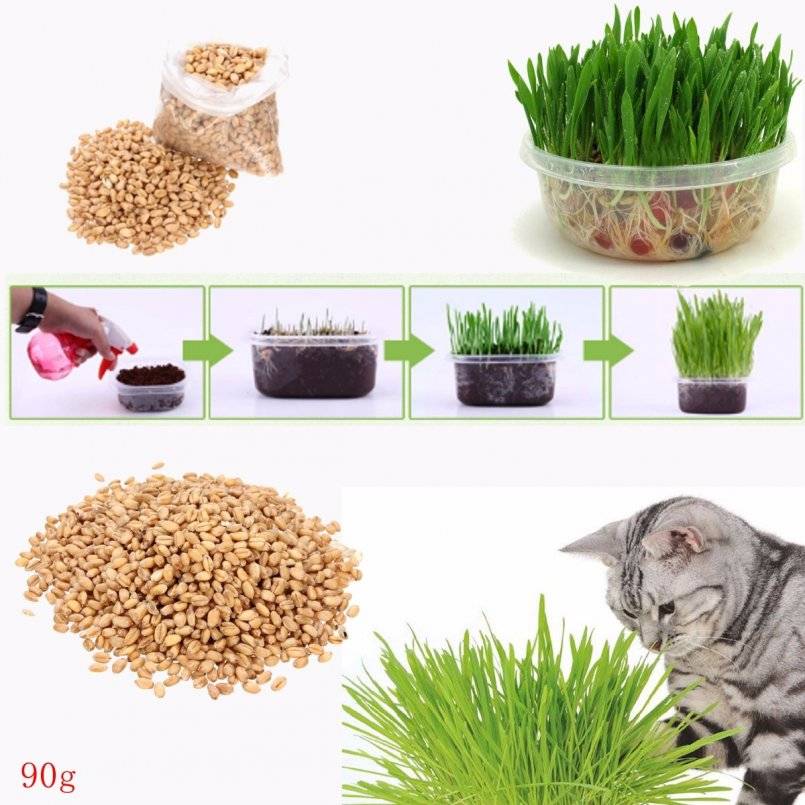 Когда высота травы достигает до 10 см, можно разрешить кошке лакомиться растением. Выращивать свежую траву от семян можно круглый год. Стоимость не высокая, около 12 рублей.