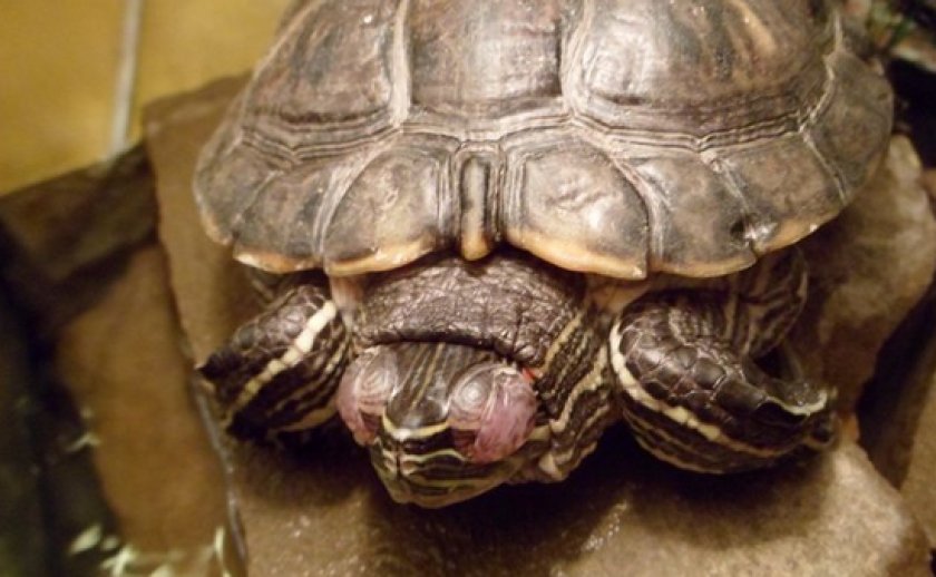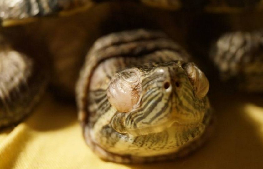 Причиной, почему красноухой черепахи не открываются глаза и наблюдаются отеки век, могут быть пневмония и сложный ринит.
