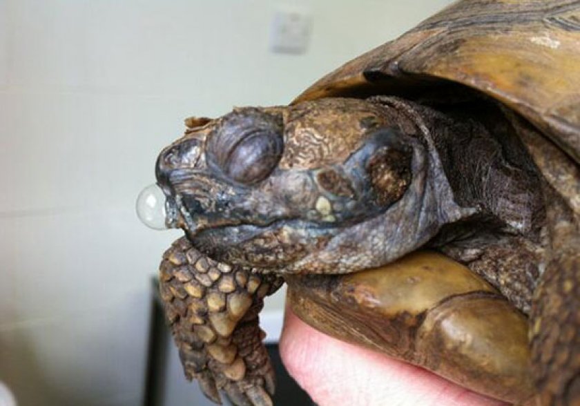 Из-за дефицита витамина D скелет черепахи размягчается и подвергается деформации. Если не начать лечение, то глаза краснеют и опухают.