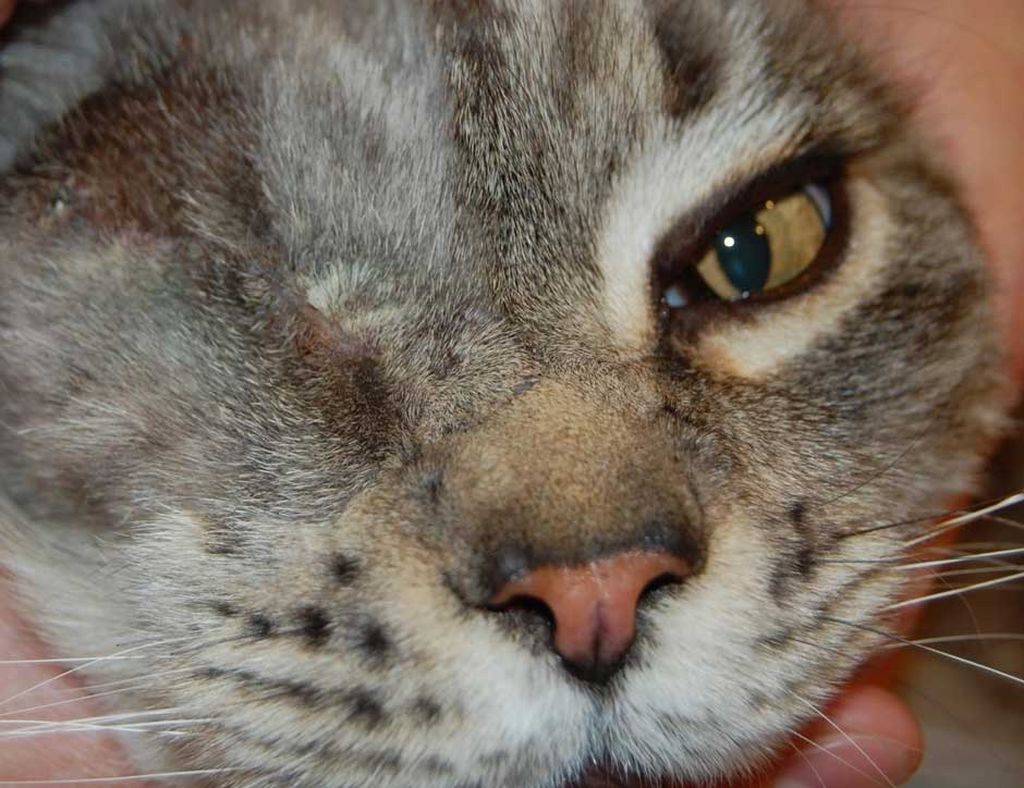 Тяжелые черепные травмы провоцируют неврит зрительного нерва и полную слепоту. Если у кошки незамкнутая глазная орбита, или выпадает глазное яблоко, то необходимо немедленное хирургическое вмешательство. Больные глаза перевязываются чистыми бинтами, и питомца везут к специалисту. Незамедлительное вправление зрительного органа гарантирует животному сохранение зрения.