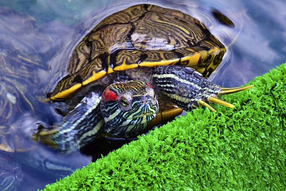 Важно понимать, что красноухая черепаха не сможет долго жить без воды. Не менее опасно и то, что она очень активно лазает по разным местам, поэтому может застрять в любой теснине