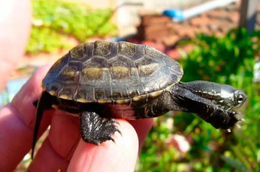 Известны выносливостью и рекомендуются к покупке в качестве первой мини черепахи. Их легко узнать по красной полоске, идущей вдоль шеи от глаз. У взрослой особи она тускнеет, как и яркие пятна на панцире. В длину новорождённая красноухая черепаха всего 2,5 см.