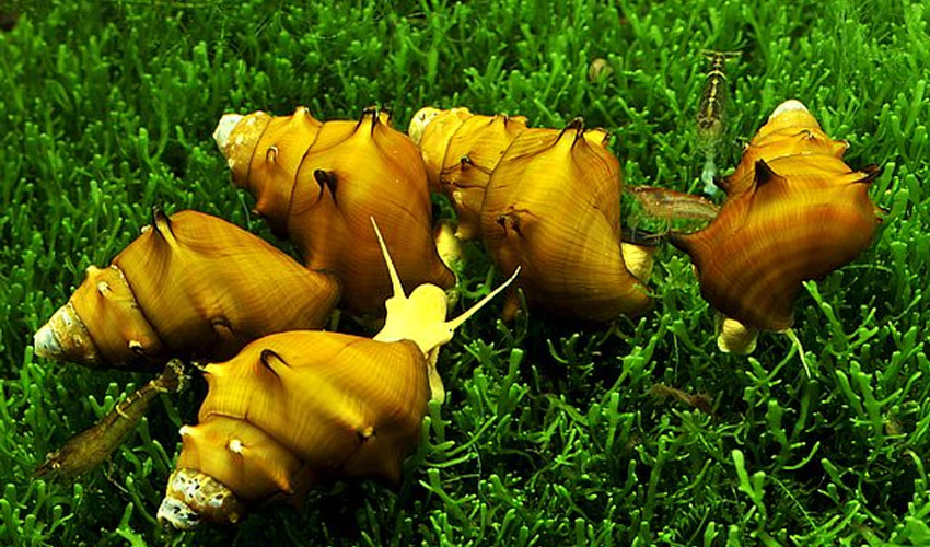 В аквариуме с улитками необходимо создать довольно быстрое течение. Вода должна быть чистая и насыщена кислородом. От недостатка кальция, в мягкой воде, панцирь улиток быстро разрушается.
