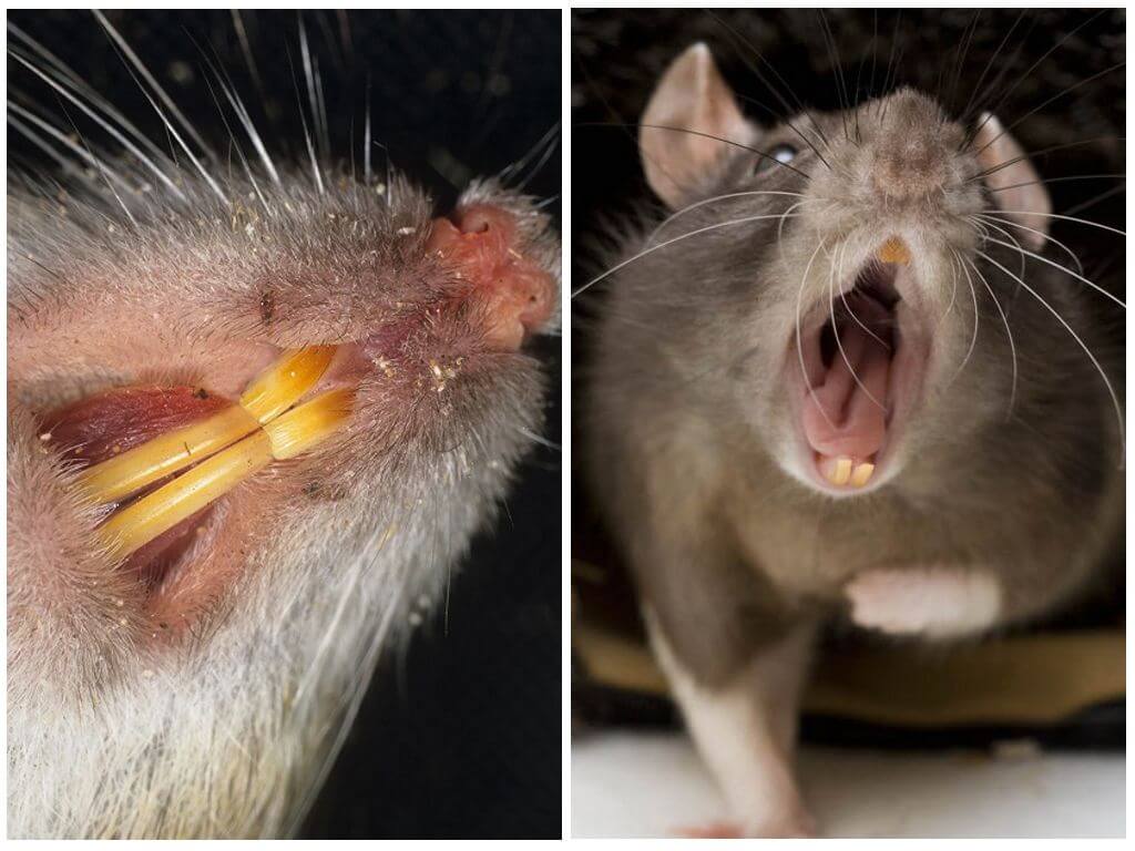 Передние зубы нуждаются в постоянном стачивании, в противном случае крыса не сможет закрыть рот. Из-за неравномерности этого процесса поверхность резцов приобретает специфическую форму, напоминающую по внешнему виду долото. Зубы крыс, благодаря высокой прочности, позволяют им легко преодолеть любую преграду из кирпича, дерева, бетона, металла и других материалов. При укусе давление резцов пасюка достигает 0,5 т/см2.