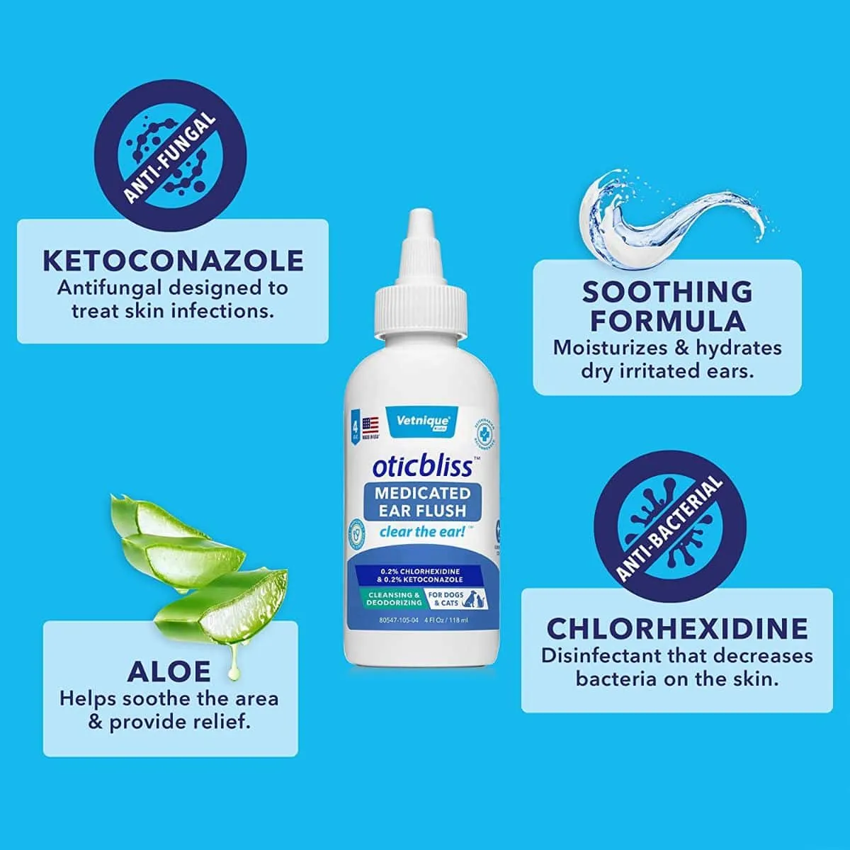 Он обеспечивает контроль запаха, уменьшает зуд и успокаивает дискомфорт. В состав средства входят кетоконазол и хлоргексидин – активные компоненты, устраняющие ушные инфекции.