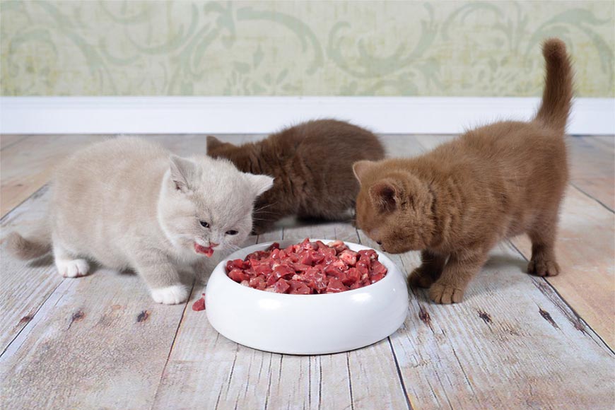Сырое мясо, рыба, молоко содержат много белка, который так необходим подрастающему организму. Многие заводчики уверены, что малыш сам определит, когда ему можно кушать такую еду, но это неверное суждение. Если котенок вместе с молоком матери есть еще и специальный корм, то необходимости в прикормке сырым мясом и другими продуктами нет.