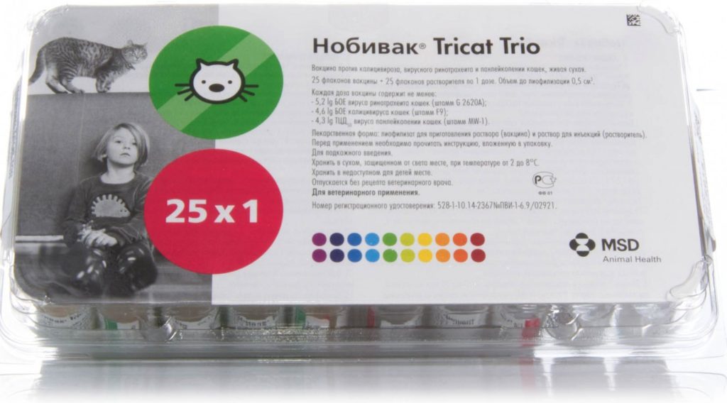 - Нобивак (Nobivak) Tricat Trio. Комплексная вакцина, которая защищает животное от чумки, от вирусов ринотрахеита, калицивироза, от короновируса;