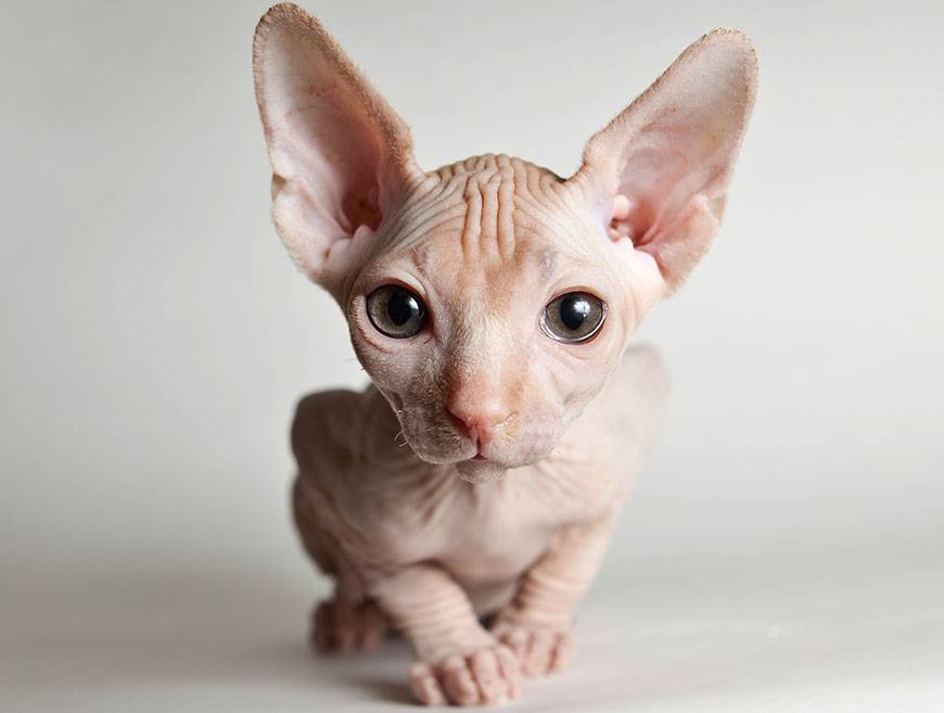 Питомец может не иметь их совсем. Из-за особенности породы, лысые кошки могут иметь обломанные вибриссы, закрученные или не иметь их вовсе.
