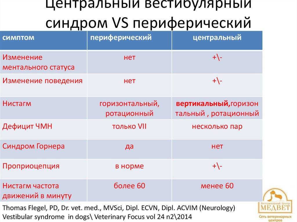 Лечение вестибулярного синдрома — длительный процесс, который потребует немалого терпения и выдержки и от хозяина, и от домашнего питомца. Во избежание рецидивов следует внимательно наблюдать за симптоматикой и ни в коем случае не прерывать лечение, даже если состояние значительно улучшилось.