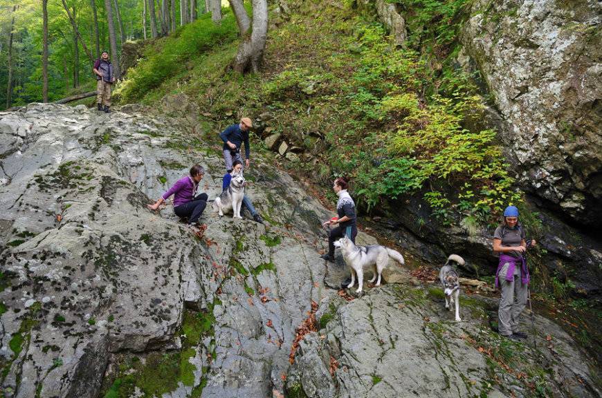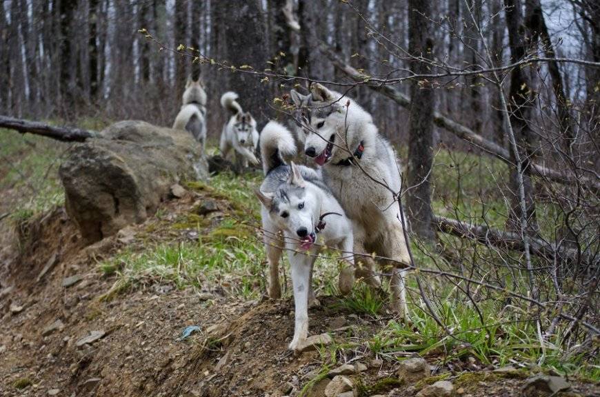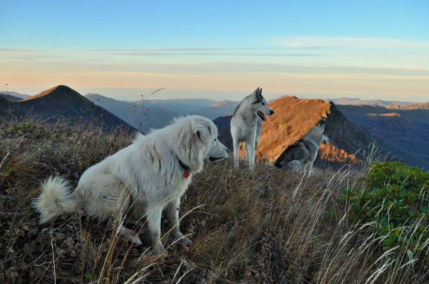 Несколько собак в походе — это, во-первых, очень весело, а во-вторых, неизбежно, если вы ищете попутчиков среди единомышленников-собачников. Мы каждый год устраиваем вылазки в лес, в предгорья с целой группой хаски и их хозяев. Вероятная проблема от нескольких собак в одной компании очевидна: они могут подраться. Кобелей, особенно молодых, лучше познакомить заранее. Возможно, они выяснят, кто из них круче, еще перед походом — во всяком случае, ветеринар, который сможет зашить раны, будет поблизости
