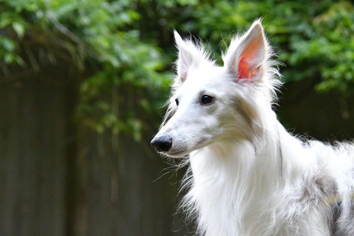 - Уши средних размеров, посажены высоко, висячие. Плотно прилегают к скулам. Шесть на ушах формирует очесы. Особенно ценятся черные волоски на концах, так называемые, серьги.