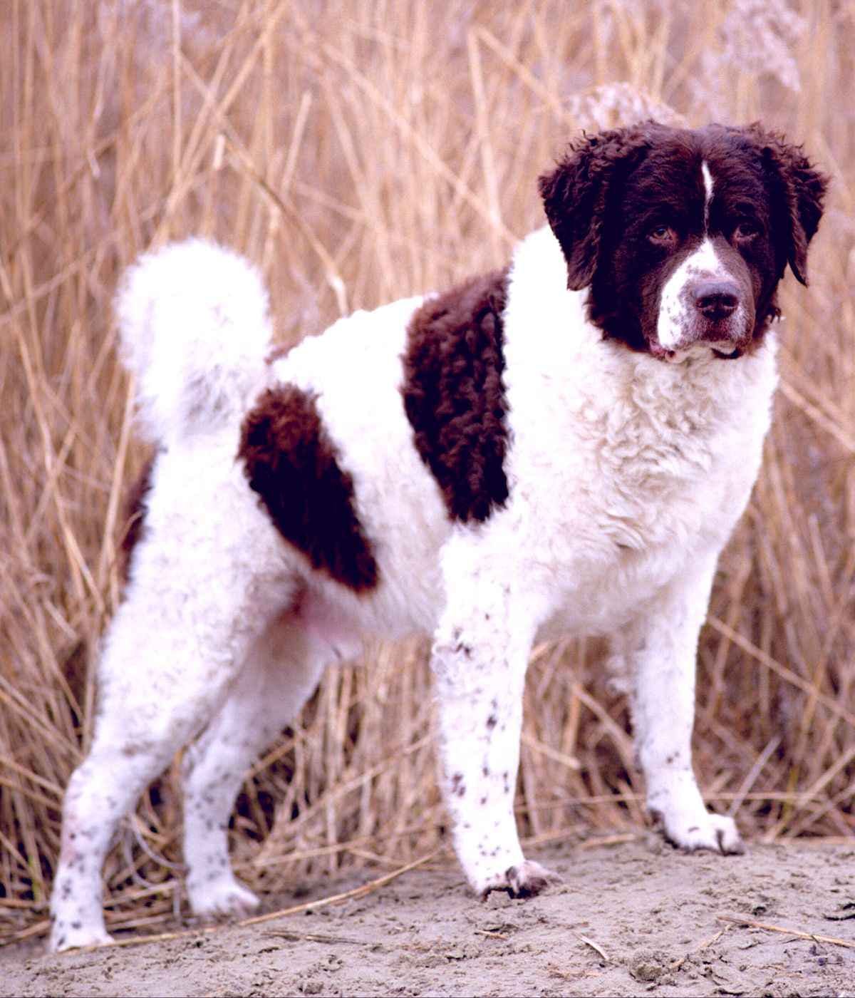 Загнутый спиралью над крупом голландского водяного спаниеля хвост – отличительный породный признак.