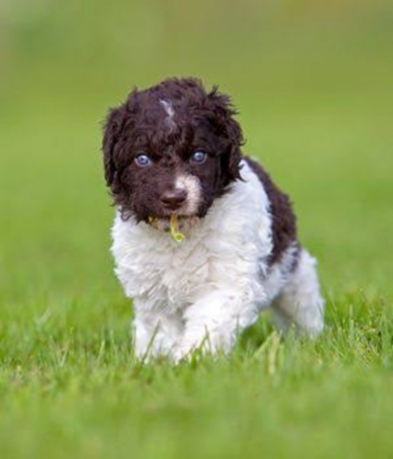 Чтобы курчавая шерсть не спутывалась и выглядела аккуратной, ее нужно расчёсывать 2-3 раза в неделю, используя гребень. Затем щеткой удаляют подшерсток и перезревший волос. Периодически делают стрижку, чтобы придать собаке более ухоженный внешний вид. полноценное купание требуется нечасто, раз в 2-3 месяца или реже. После плавания в соленой воде, собаке нужно дать возможность окунуться в пресной, чтобы смыть излишки соли и водорослей.