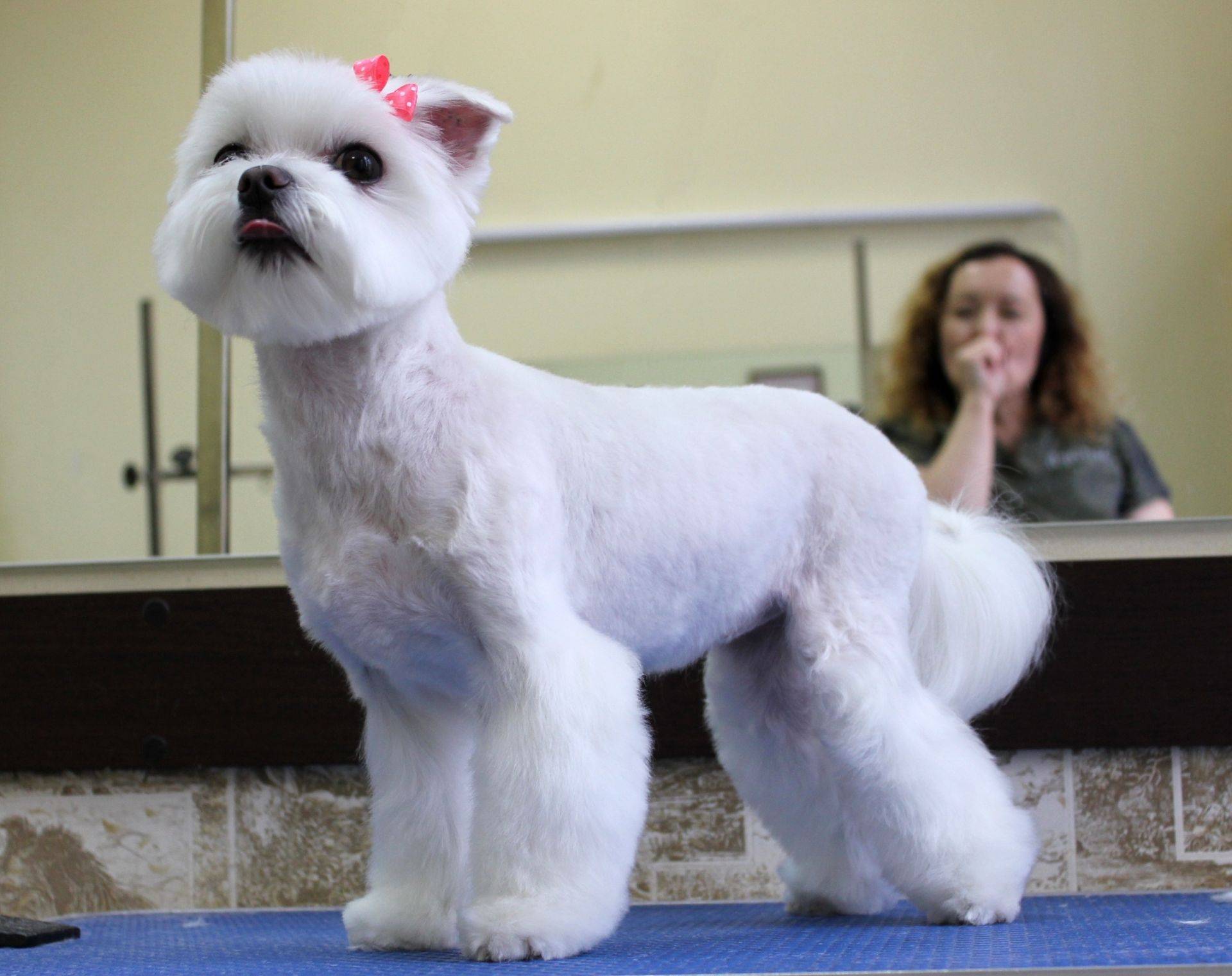 Выставочных мальтезе обычно не подстригают коротко — для них важна длинная и ухоженная шерсть. А вот питомцам вне шоу-деятельности часто создают причёски, причём от простого подравнивания длинной шерсти до кардинального её состригания.