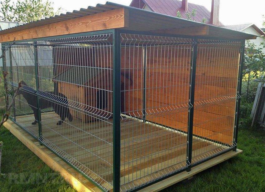 Фактор надёжности важен, материалы должны быть без изъянов и дефектов, иметь устойчивость к механическим нагрузкам. Временный вольер на лето имеет пространство для выгула животного, будку, навес. Две стены делаются открытыми, завешиваются металлической сеткой-рабицей, две стены обшиваются досками или фанерой. Стационарный вольер состоит из двух помещений: