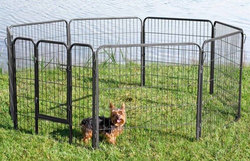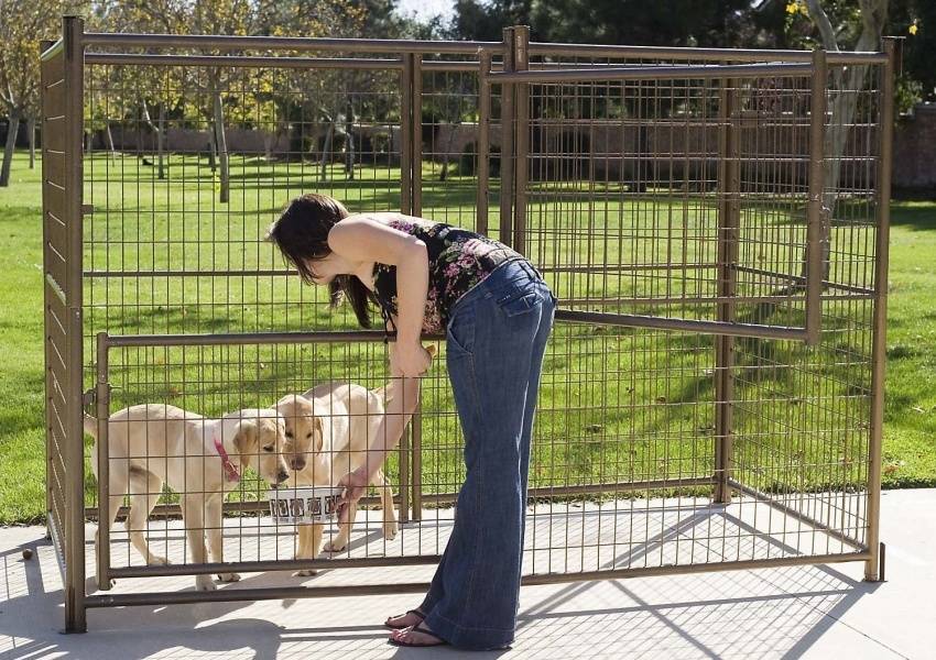 Тем, кто собирается делать вольер для собаки в помещении, вовсе не обязательно придерживаться таких строгих правил. Ведь можно ограничиться специальной решеткой