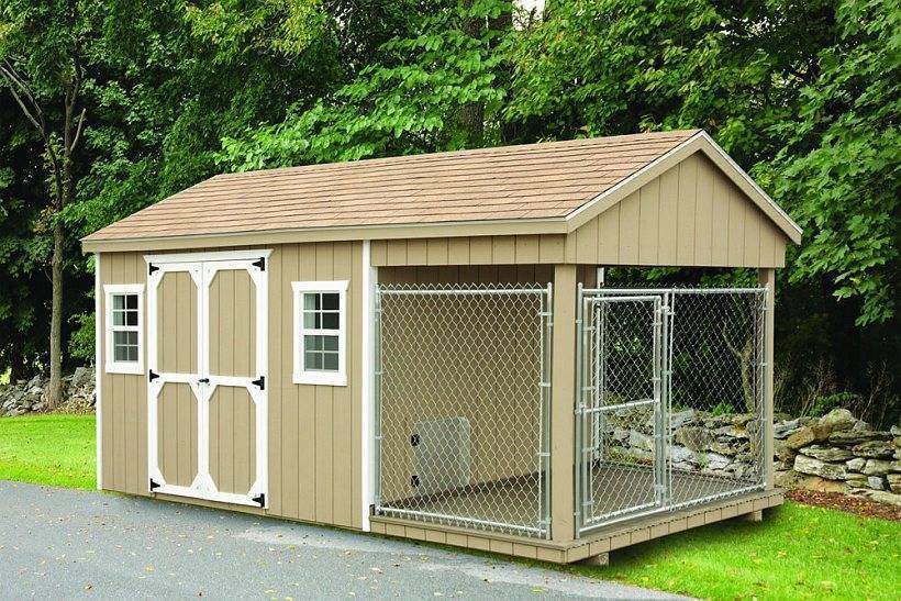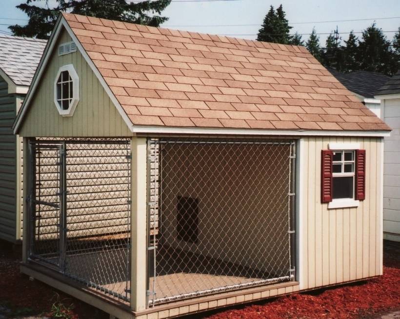 Отдельно стоит отметить, что вольер предусматривает наличие спального места для собаки, которое защищено от ветра, дождя и холода. Для этого можно использовать будку, но если она является частью вольера, то строить ее не нужно.