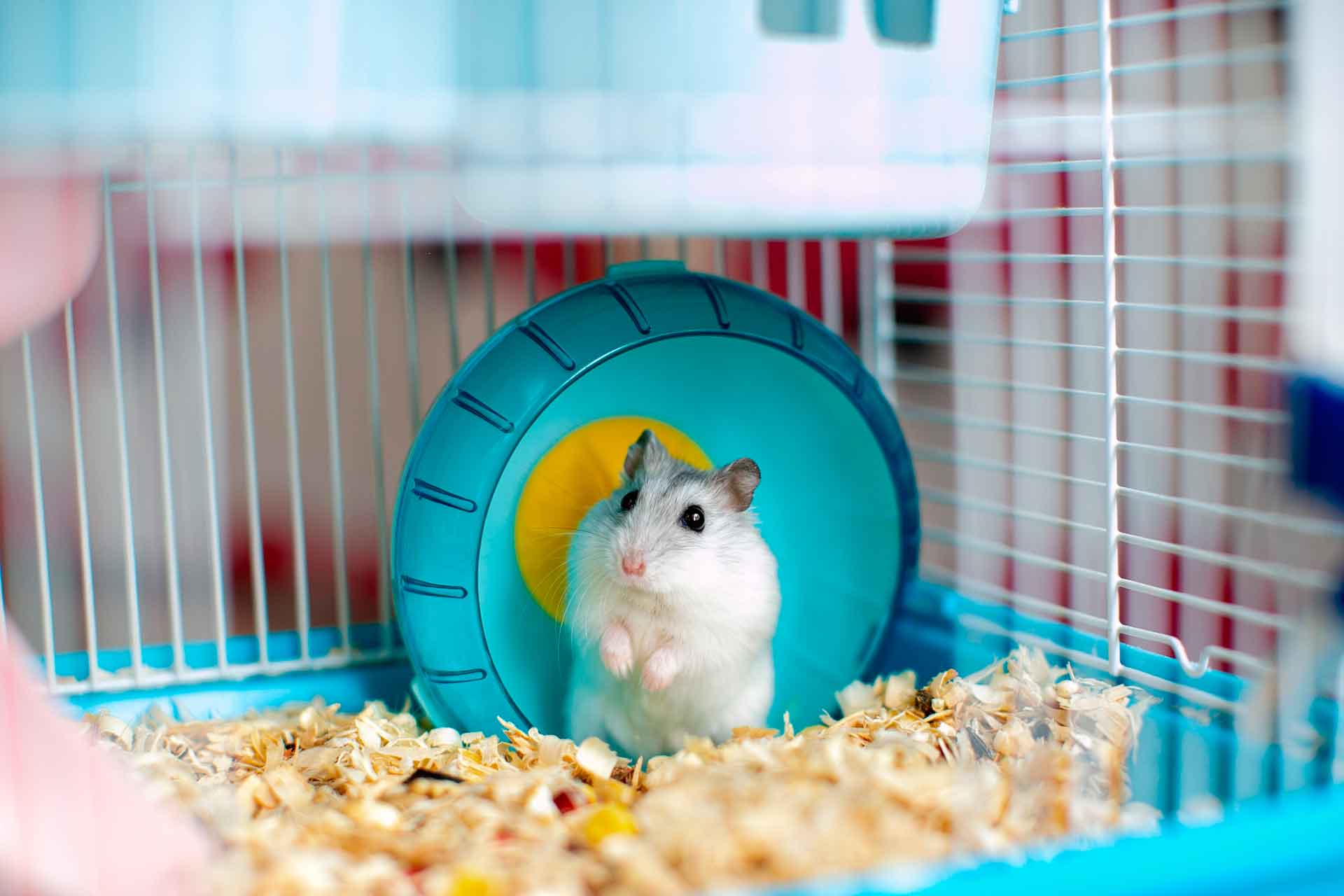 Сирийский хомяк очень активное животное, поэтому ему и нужно как можно больше места. Также стоит позаботиться и об интерьере клетки. Наверное, самое популярный элемент в клетке – это беговое колесо. Оно должно быть обязательно! Это своего рода спортивный инвентарь, благодаря которому сирийский хомячок будет тратить энергию и поддерживать себя в тонусе, что несомненно положительно скажется на его здоровье. При недостатке места в клетке и отсутствии достаточной подвижности, животное будет грызть прутья и делать попытки бегства.