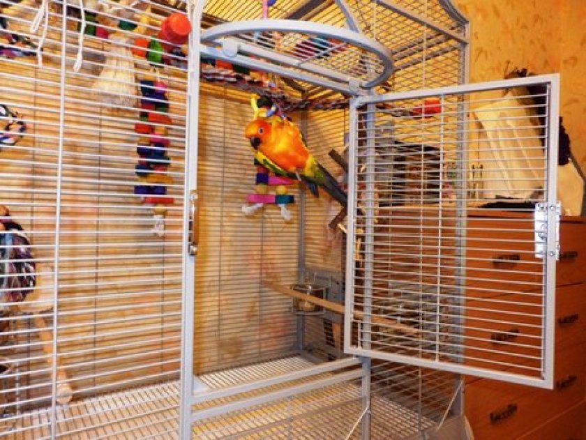 Клетка для тропических попугаев в обязательном порядке должна быть максимально просторной. Минимальные размеры клетки не могут быть менее 50-60х50-60х90-100 см. Внутри такой клетки попугай должен иметь возможность свободно раскрывать свои крылья, не касаясь стенок. При обустройстве клетки для попугая нужно использовать всевозможные снаряды, по которым аратинга сможет беспрепятственно и часто лазать.