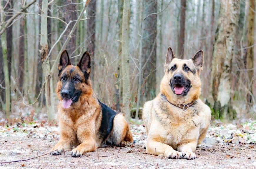 Фото немецкой овчарки и восточноевропейской (слева-направо)