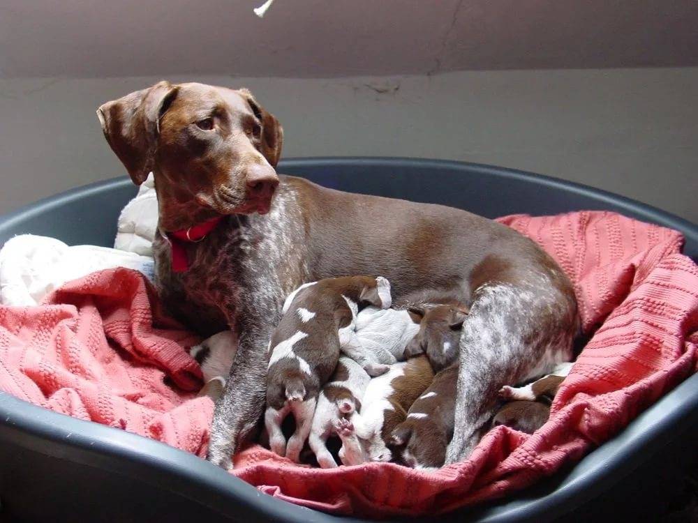 После того, как все щенки будут рождены, сука съест послед и будет готова начать выкармливание потомства. Смените подстилку под ней на чистую, протрите начисто половые органы, а затем помогите малышам впервые найти мамин сосок.