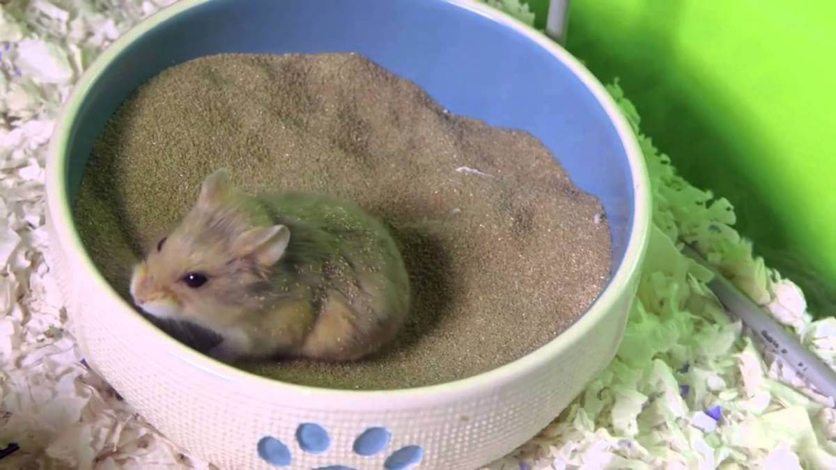 В виду того, что хомячков купать не рекомендуется, то им изредка следует устраивать песочные ванны. Устраивать ванночки необходимо когда шерстка питомца свалялась или утеряла блеск. Для таких ванн следует в емкость насыпать песка и затем запустить в нее питомца. Хомячки с огромным удовольствием барахтаются в такой ванне.