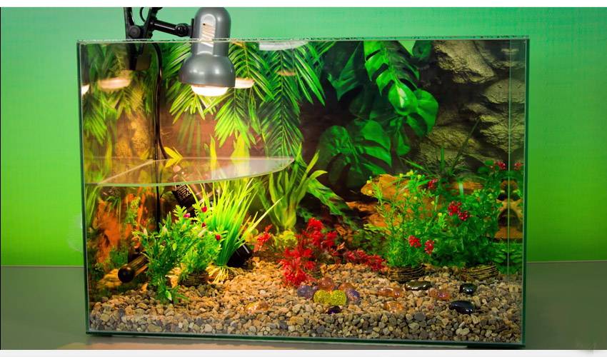 В их аквариум обязательно нужно добавить один или несколько островков суши, чтобы они могли отдохнуть и полностью высохнуть под светом специальной лампы.