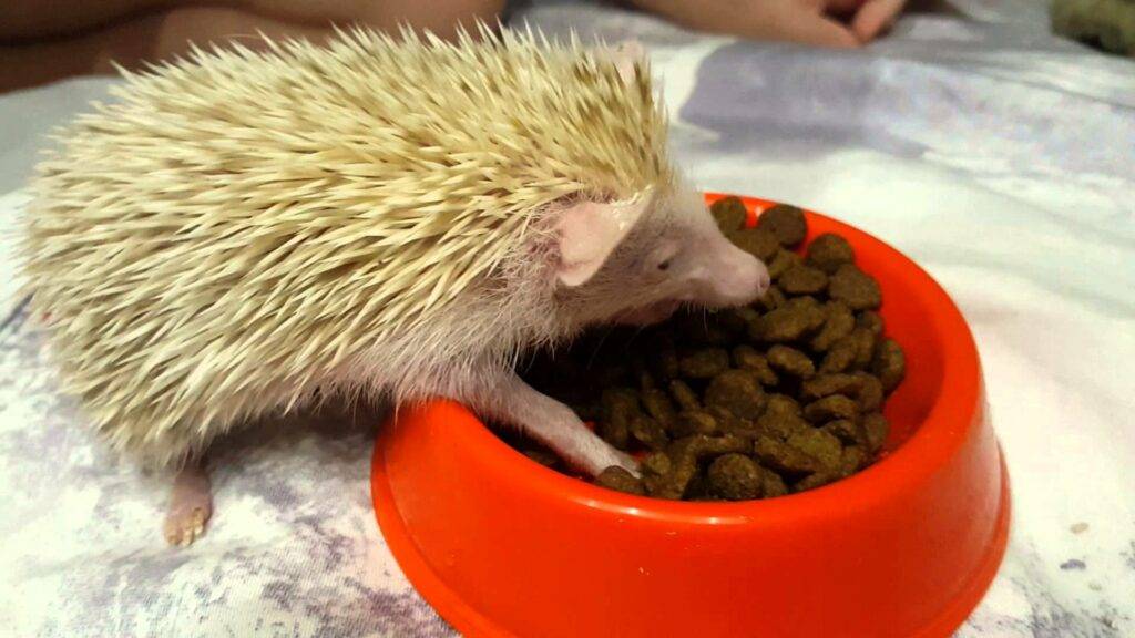 Большую часть корма необходимо оставлять на вечернее и ночное время, колючий питомец активен ночью, и если не оставлять ему пищу на ночь, будет сновать по клетке в ее поисках. Беременным самкам необходимо давать пищу 3—4 раза в день.