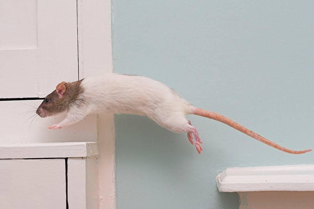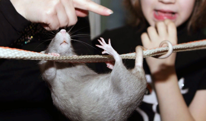 - Балансировка. Хвост крысы позволяет ей передвигаться почти по вертикальным поверхностям, лазить по проволоке или веревке. Именно он дает возможность контролировать баланс, сохраняя равновесие. Благодаря ему зверек может встать на задние лапки, зацепиться за что-либо и со спины перевернуться на поверхность живота. Причем длина хвоста крысы определяет и степень ловкости. Проще говоря, чем большую длину имеет эта часть тела, тем уверенней будет передвижение для хозяина.