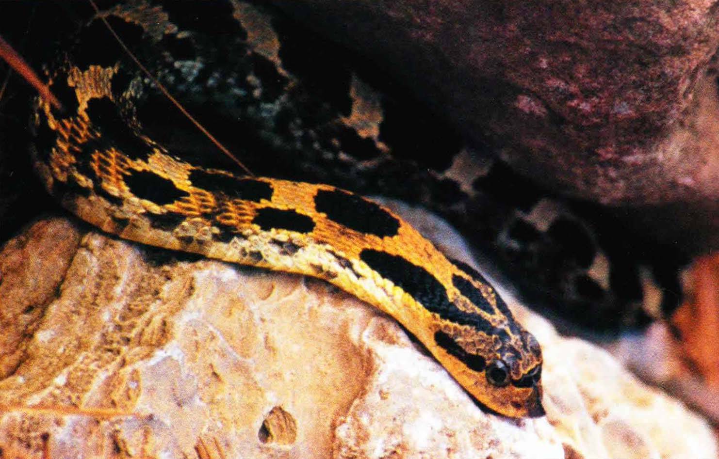 Свиноносая носатая змея (Heterodon nasicus) распространена в центральной части Северной Америки. Ее кремовое тело украшено орнаментом из коричневых пятен, напоминающим красочный узор на теле гадюки. Эта рептилия ищет поживу, роясь в листовой подстилке.