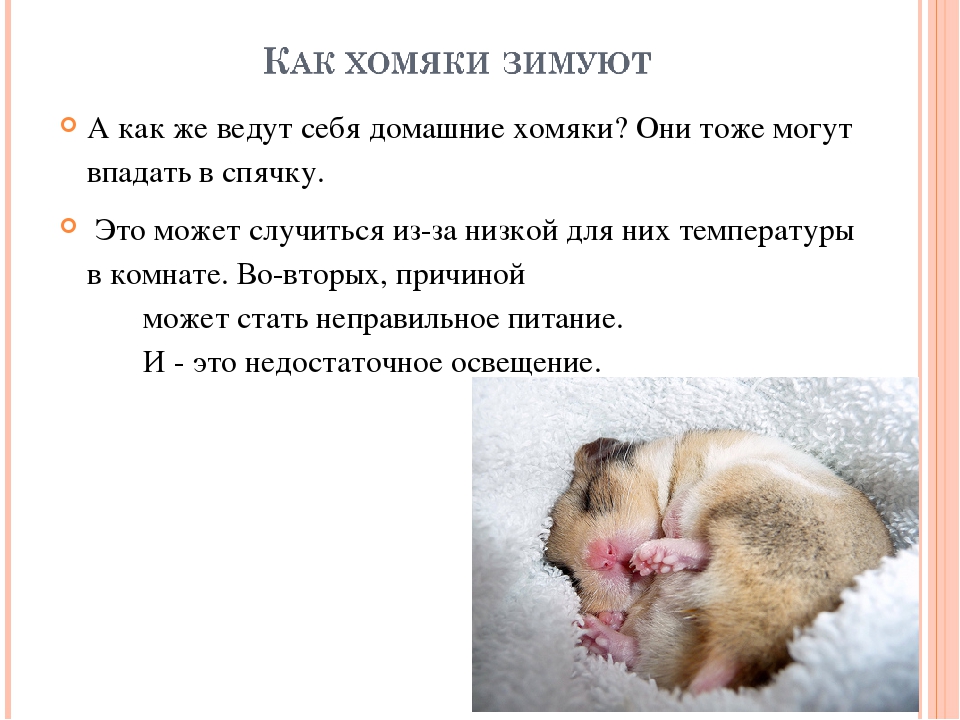 Успешность лечения грызунов зависит от того, как быстро было определено заболевание, поэтому важно следить за состоянием своего питомца. Многие болезни домашних хомяков сопровождаются такими симптомами: глаза немного прикрыты или выглядят мутными, шерсть тусклая и взъерошенная, грязные гениталии, потеря веса, вялость, медлительность и отказ от пищи