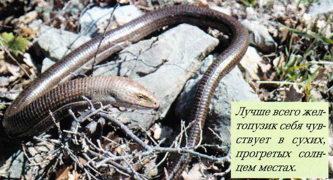Довольно часто жителей и гостей Крыма, Кавказа или Средней Азии пугает ползучий гад желтопузик, которого принимают за ядовитую степную гадюку. В Украине местом его жительства является только Крым.