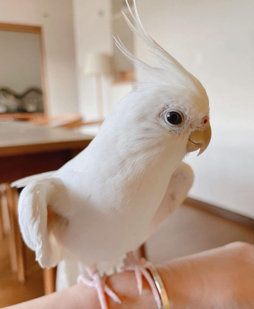 Настроение попугая можно легко определить по положению хохолка на его голове. Прямые (стоящие под прямым углом) пёрышки говорят о том, что птица удивлена или очень заинтересована. При оборонительной позиции перья расположены горизонтально, почти прижаты к голове. А если птица ещё и шипит, то она явно переживает стресс. У спокойного, расслабленного попугая хохолок слегка отклонён назад, перья слегка распушены.