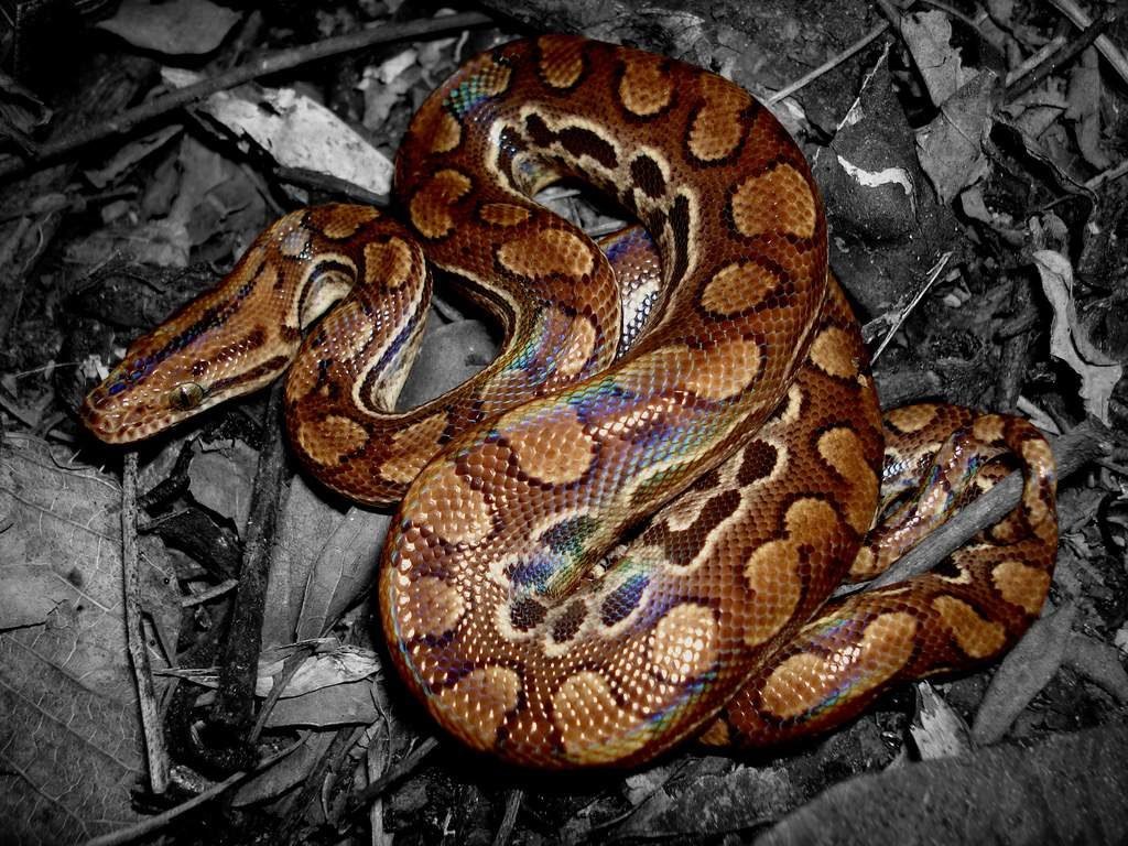 Окрас радужного удава не оставит равнодушным даже самых боязливых.