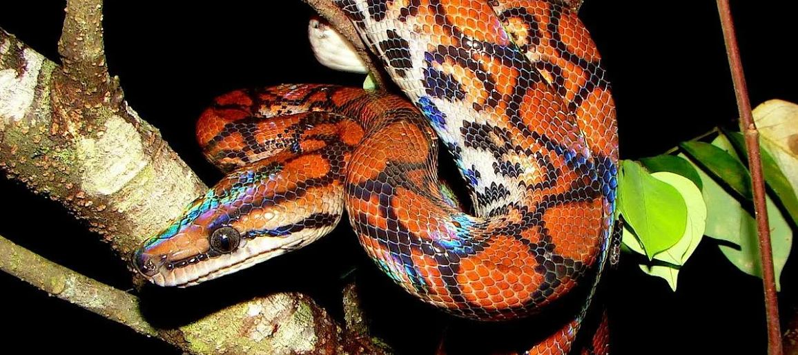 - Маскировка от хищников. Радужная окраска может также помогать радужным удавам скрываться от врагов в лесной растительности. Их цвета могут сливаться с фоном или создавать эффект размытия контуров тела. Кроме того, радужные удавы могут использовать окраску для запугивания хищников, показывая им яркие цвета и делая вид, что они ядовиты или опасны.