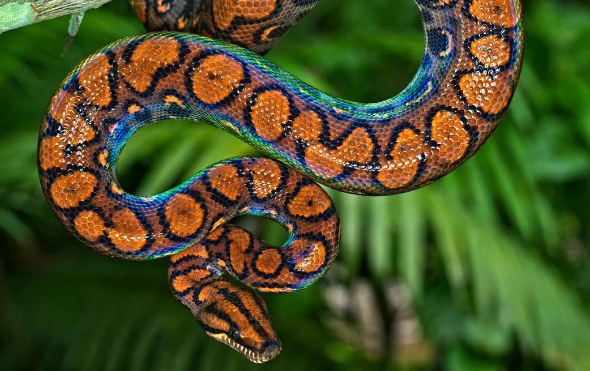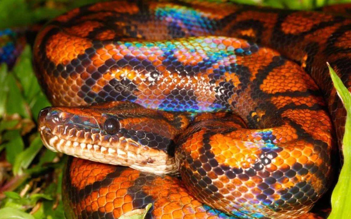 Радужные удавы обладают уникальной способностью отражать свет таким образом, что это создает на их теле разноцветные полосы и пятна, напоминающие радугу. Этот эффект объясняется тем, что их чешуя состоит из множества микроскопических ребристых структур, которые действуют как дифракционная решетка. Дифракционная решетка — это поверхность, на которой есть много параллельных щелей или линий, которые разбивают падающий свет на разные цвета спектра. Таким образом, в зависимости от угла падения света и положения наблюдателя, чешуя радужного удава может менять цвет от красного до фиолетового.