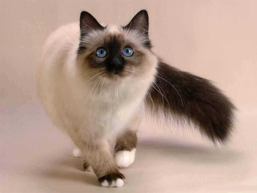 Регдол – порода кошек, которую легко узнать по своеобразному бело-коричневому убранству и голубым глазам. Полудлинноволосые, их название – Регдол, от английского Rag Doll – происходит от того, как они полностью расслабляются, когда вы берете их на руки.