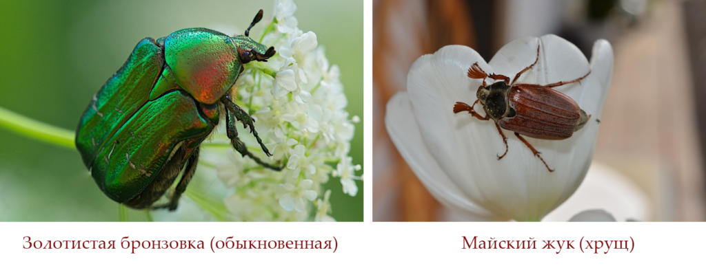 Как видно на картинке, имаго этих двух насекомых в значительной степени отличаются друг от друга. Однако личинки майского жука и бронзовки имеют существенно меньше отличий, но все же они есть:
