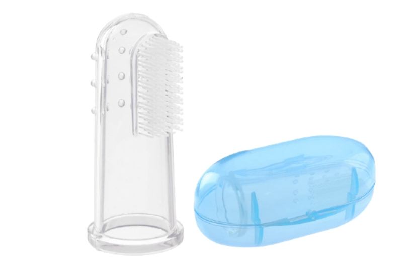 Второй вариант – пальчиковые щетки. Они изготавливаются в виде колпачка, одевающегося на палец. Напальчники представлены 2 видов: со щетиной для чистки и с пупырышками для массажа десен. Обычно продаются в комплекте.