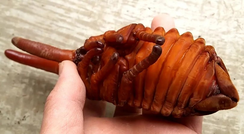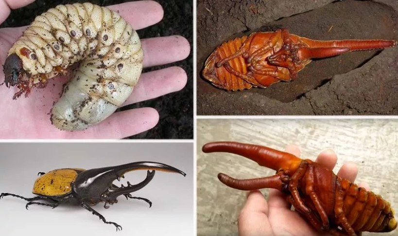 Третья фаза развития жука геркулеса – куколка. У жесткокрылых она свободного или открытого типа. Перед окукливанием в колыбельке личинка вырастает до огромных размеров и набирает внушительный вес. Зафиксированы случаи, когда она весила 120 г.